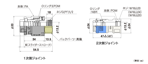 【1次側ジョプラ】水道1次配管でも十分に耐久性のあるプラスチックジョイントを目的として開発されました。本体材質に金属を併用する事で、樹脂製ジョイントとしては優れた耐圧能力・機械的強度を誇り、水であれば高温域にも使用可能です。 ☆オートロック機構装備